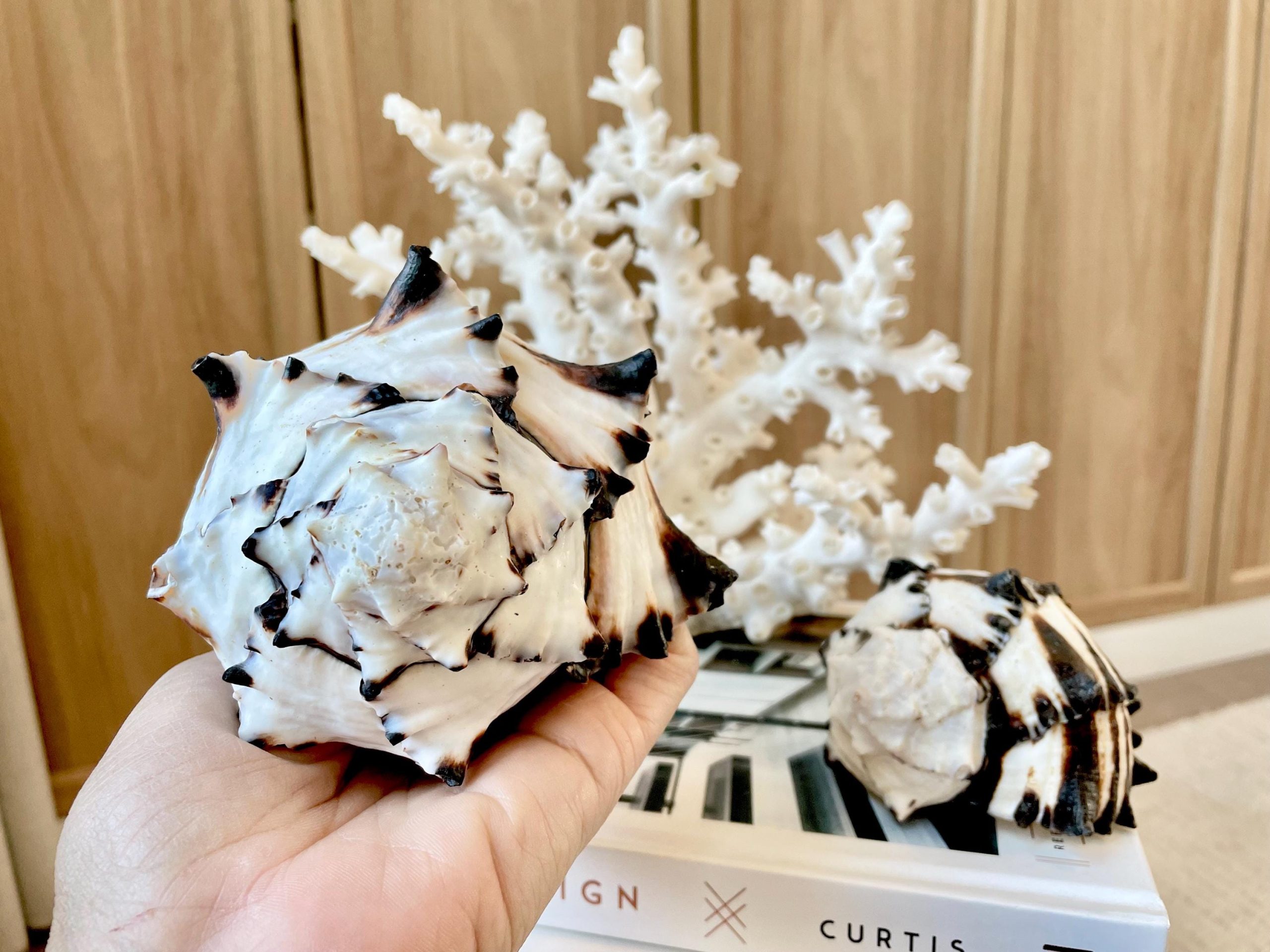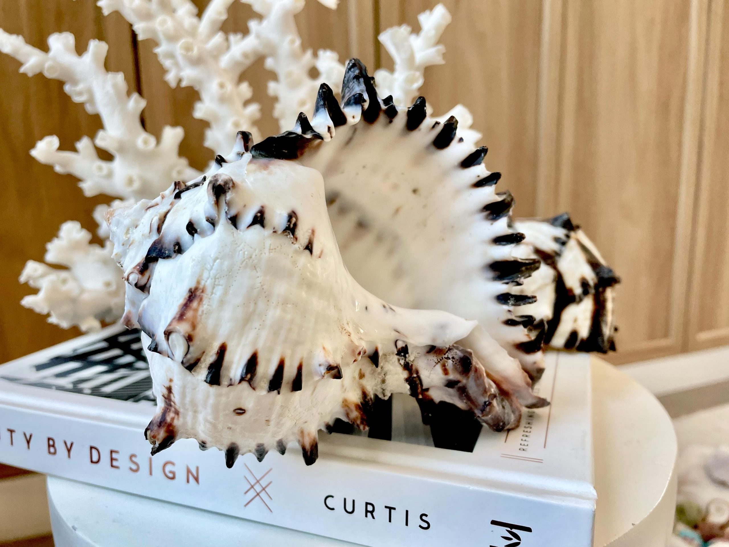 Black Murex Seashell *All Sizes* Coastal Home Décor Conch Shell. Each order is for one assorted shell like the photos, size of your choice. Ultra dark brown/black stripes, white base, cool spines. Shells may have mild natural imperfections, as shown in the photos.