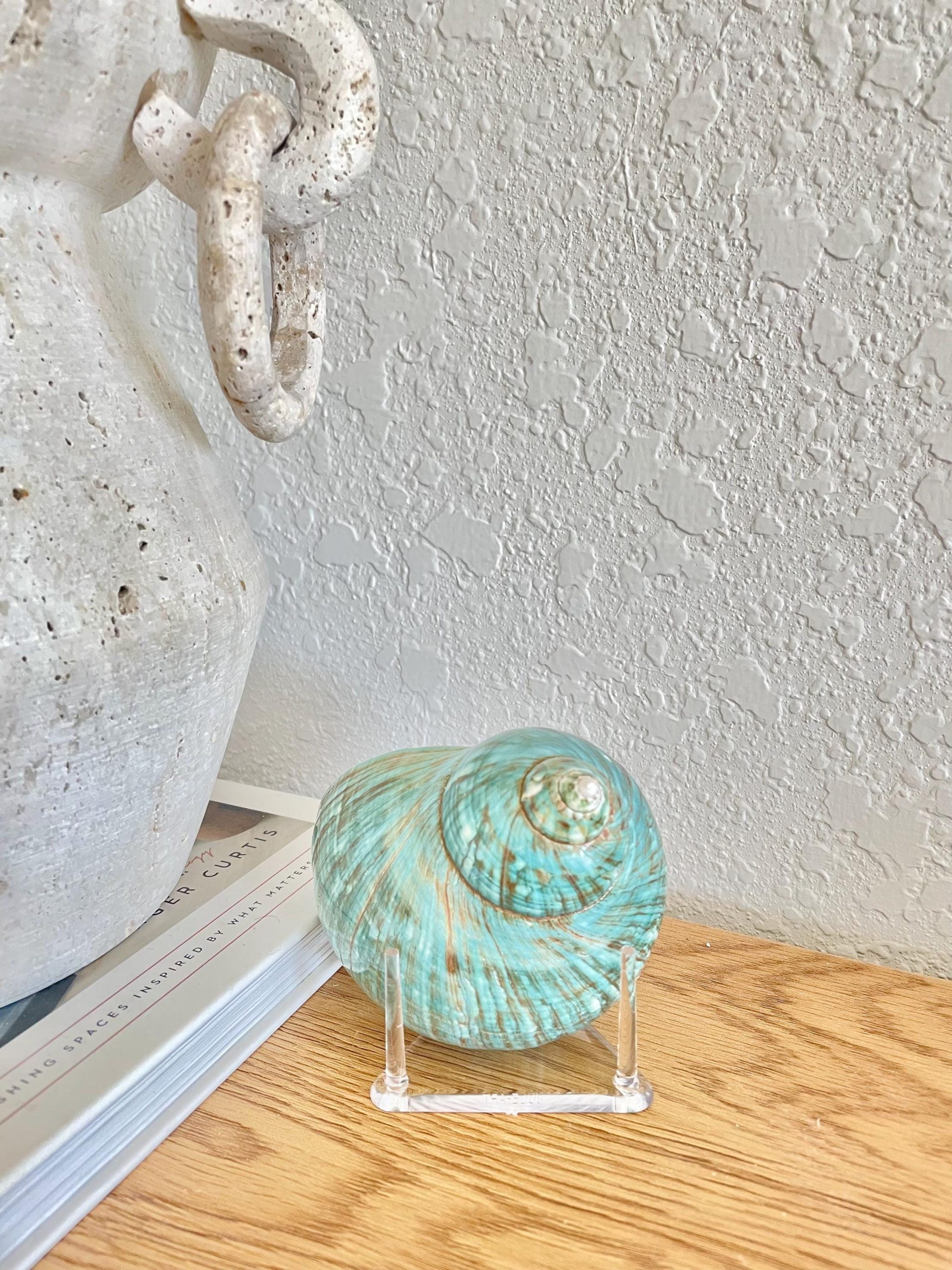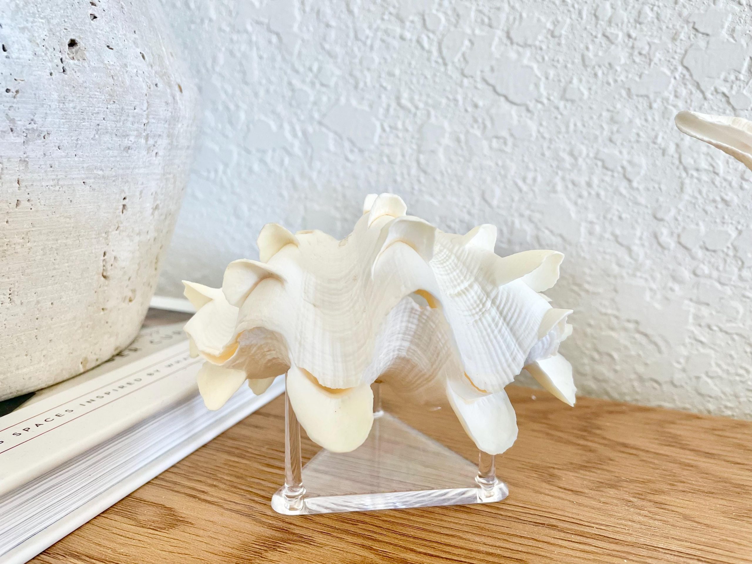 Small triangular clear Lucite acrylic display stand /riser. Measuring 2.5″ x 2.5″ and 1.5″ tall. Each stand features 3 leg posts. I recommend this stand for anything 3-10″ in size. Shells and corals are not included. Additional sizes sold in store. Fast, free shipping to the USA. Shipping to Hawaii is not available for this item.