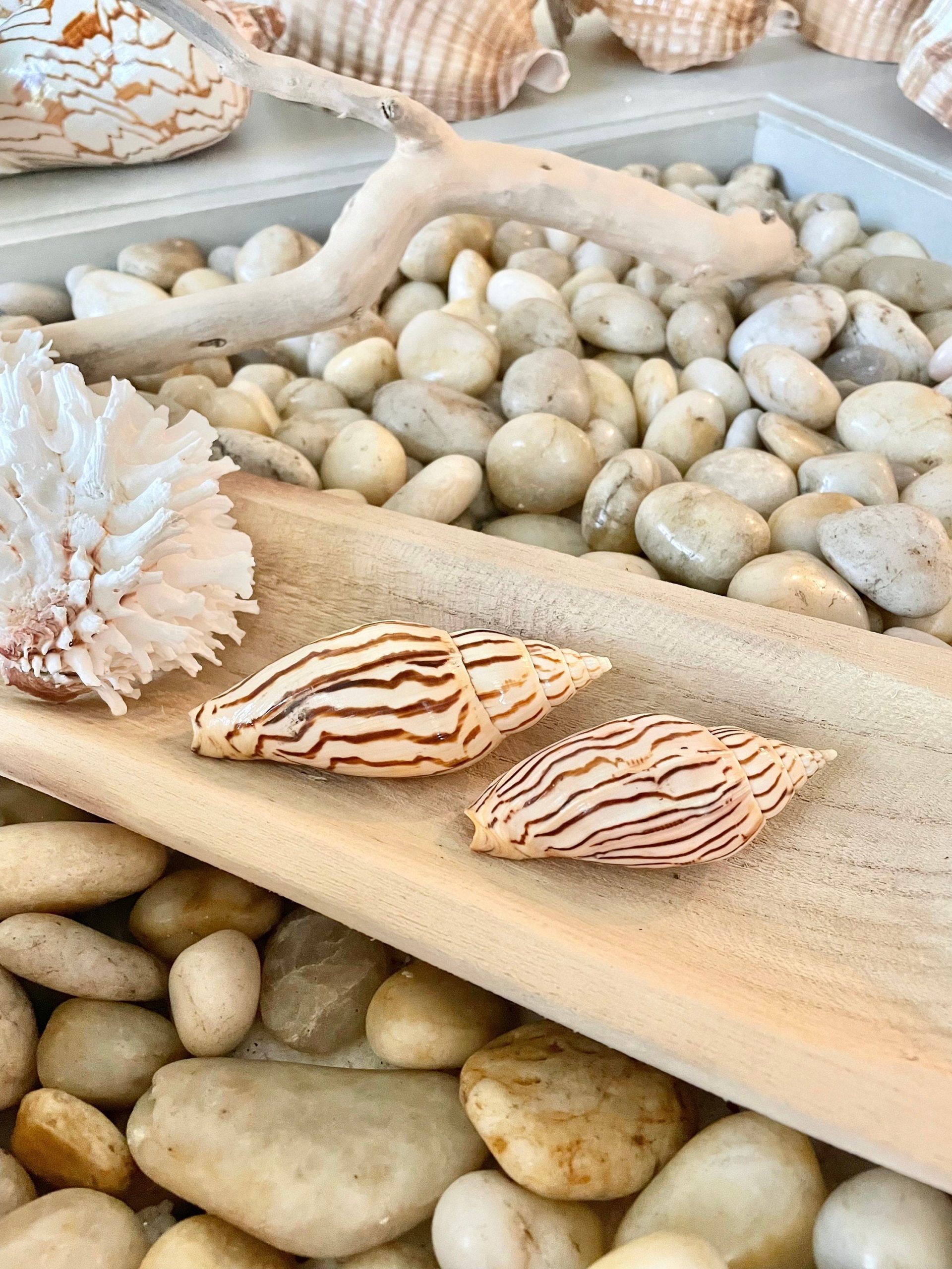 STRIPED FLAG VOLUTE 3-4″ *Set of 3* Natural Beige Brown Patterned Display Seashells Beach Décor. Each order is for a set of 3 assorted shells.