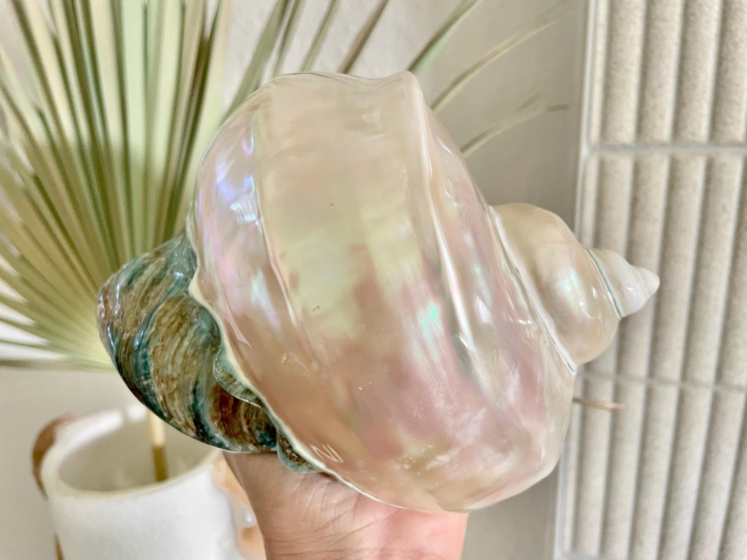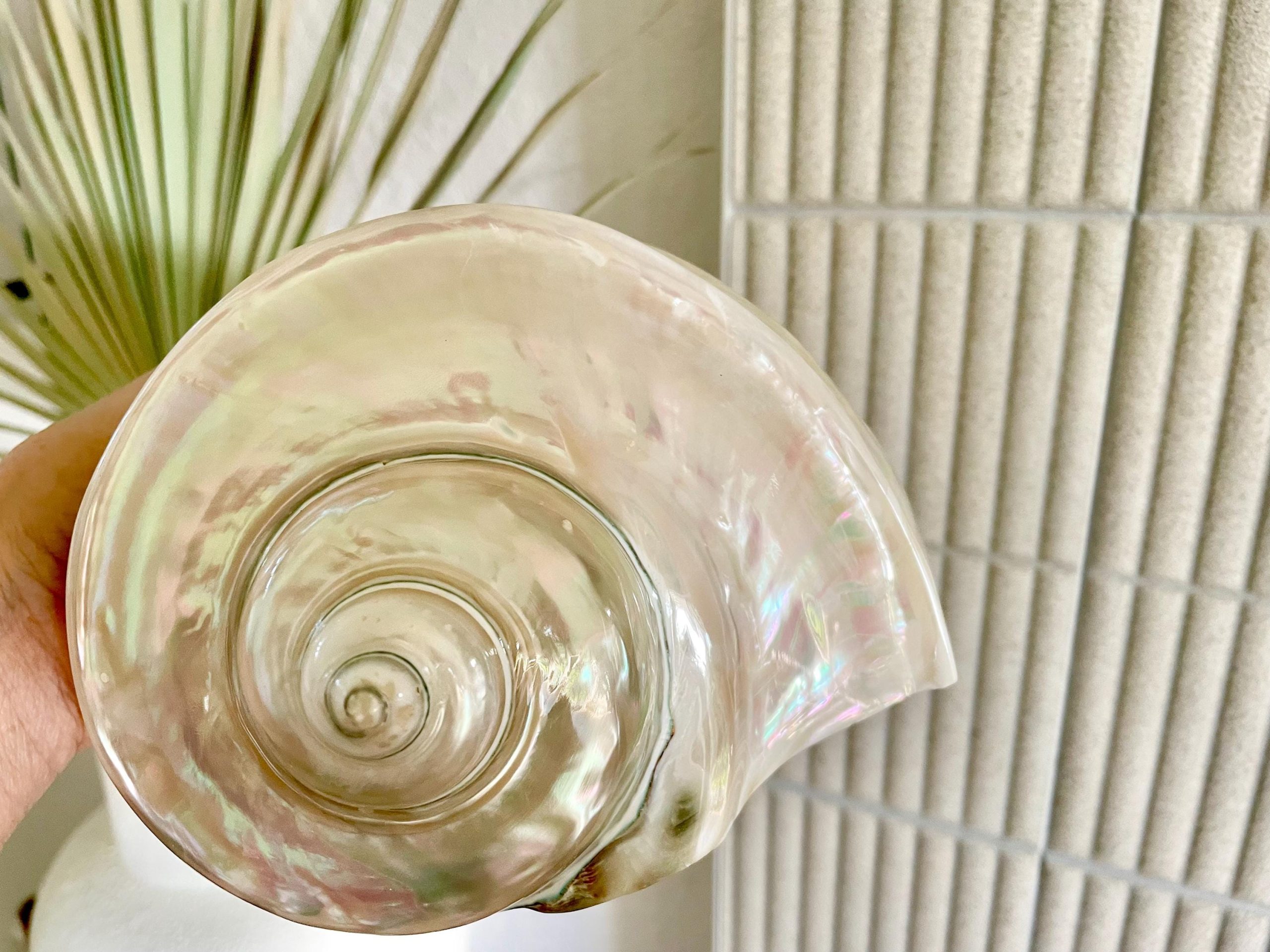 Giant Pearlized Turban Shell, Polished Mother of Pearl Coastal Decor (7-8″)