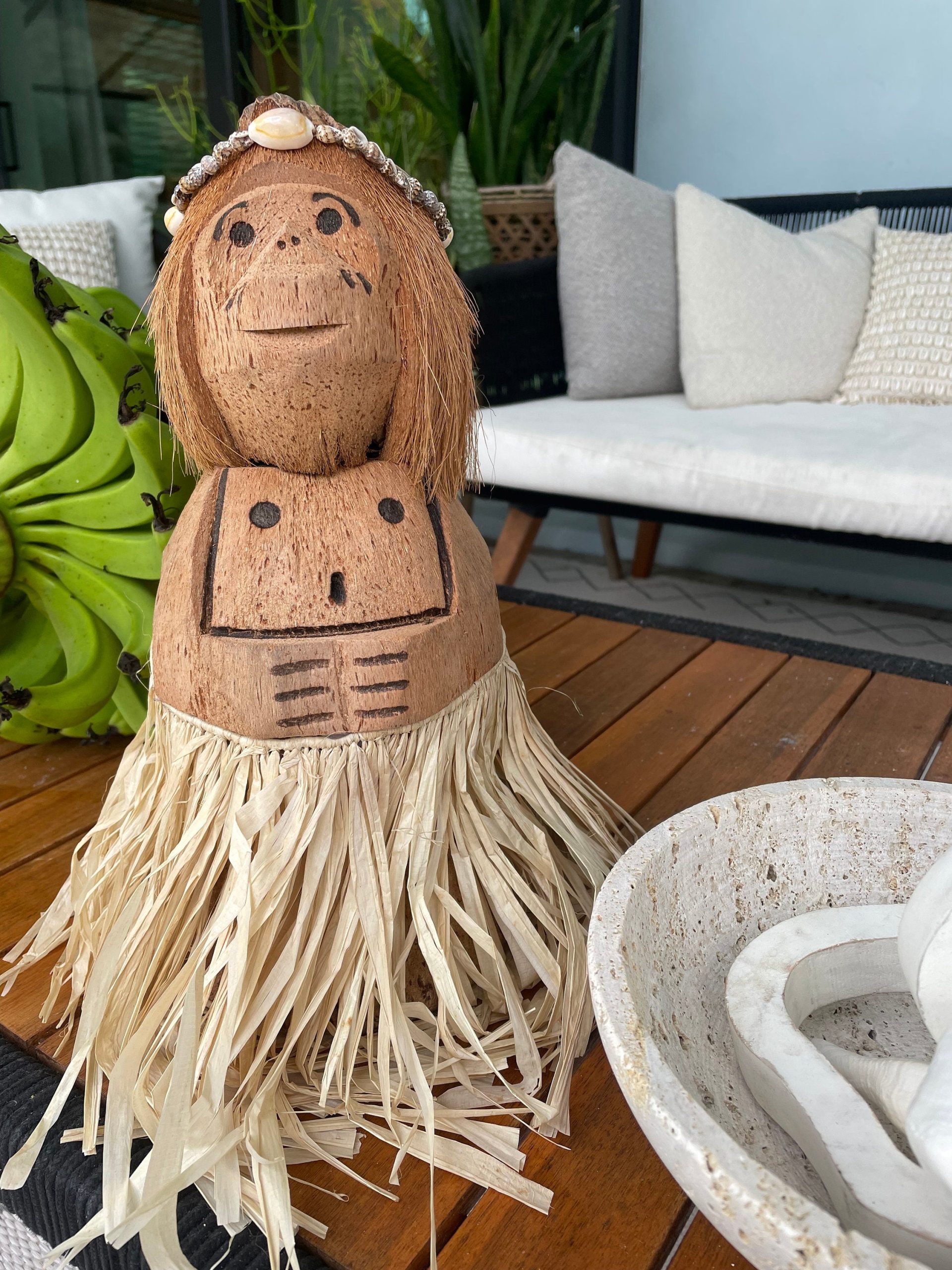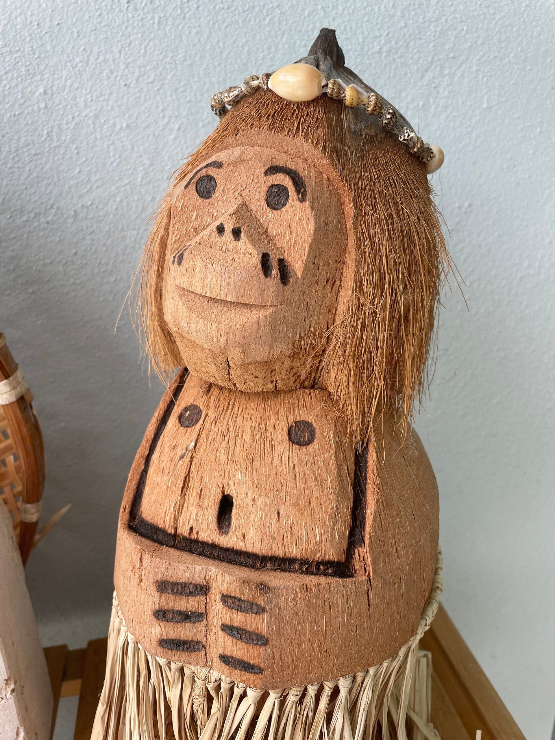 Handmade Coconut Monkey Doll, 15×6″ Seashell & Raffia Coastal Décor