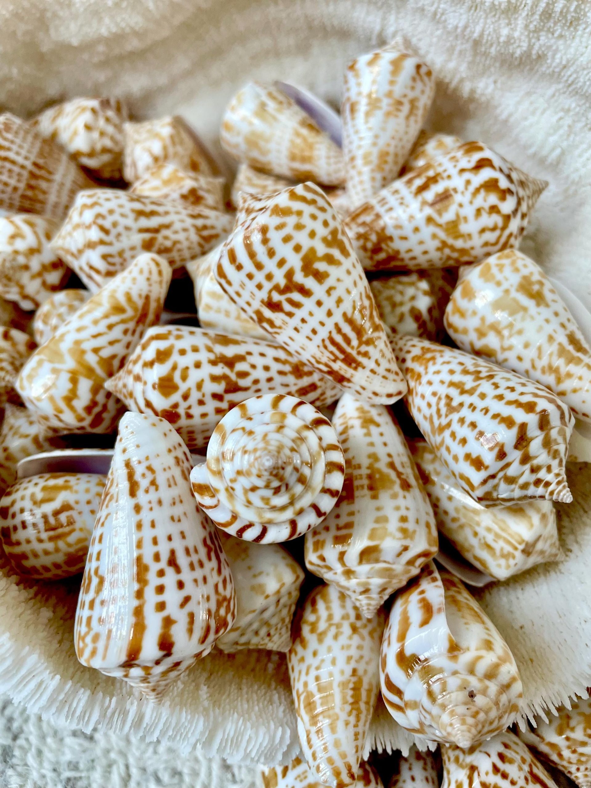 INSCRIPTUS CONE Shells *You Choose Quantity* 1.5-2″ Natural Golden Brown White Spotted Small Craft Seashells Coastal Beach Home Décor, Buffed smooth.