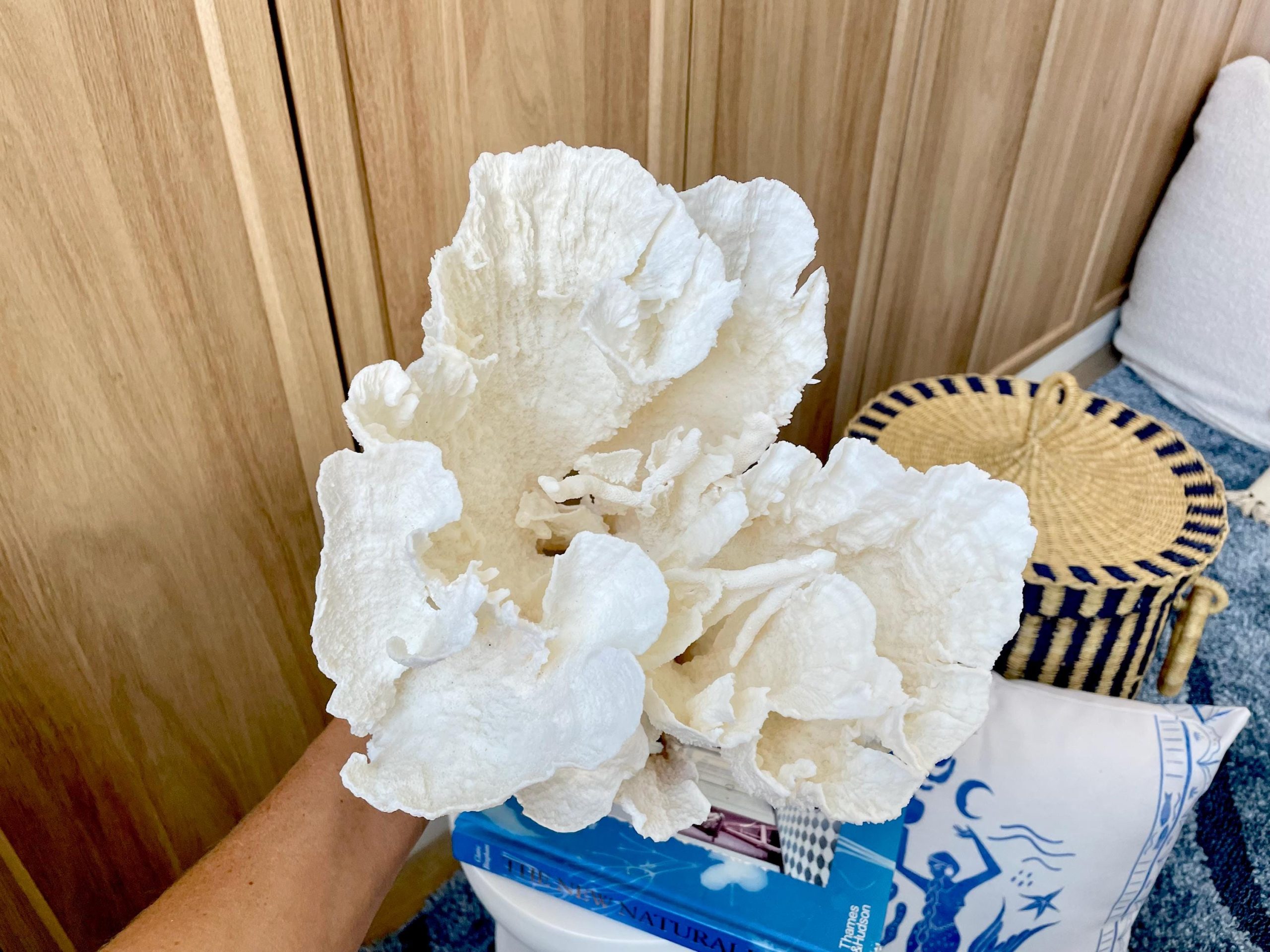 This is the exact Poca coral fossil you will receive. 9.5″ tall, 9.5″ wide and 8.5″ deep. A beautiful addition to your coastal décor. Our Poca Coral is a customer favorite, loved for its beautiful blooming shape and delicate texture. Each piece is a natural sea coral fossil, responsibly sourced from the ocean. Lightweight and full of intricate spiraling clusters, these corals grow in rounded or oval formations. Larger pieces feature more spirals and “fluffy” clusters, creating an elegant, organic look.