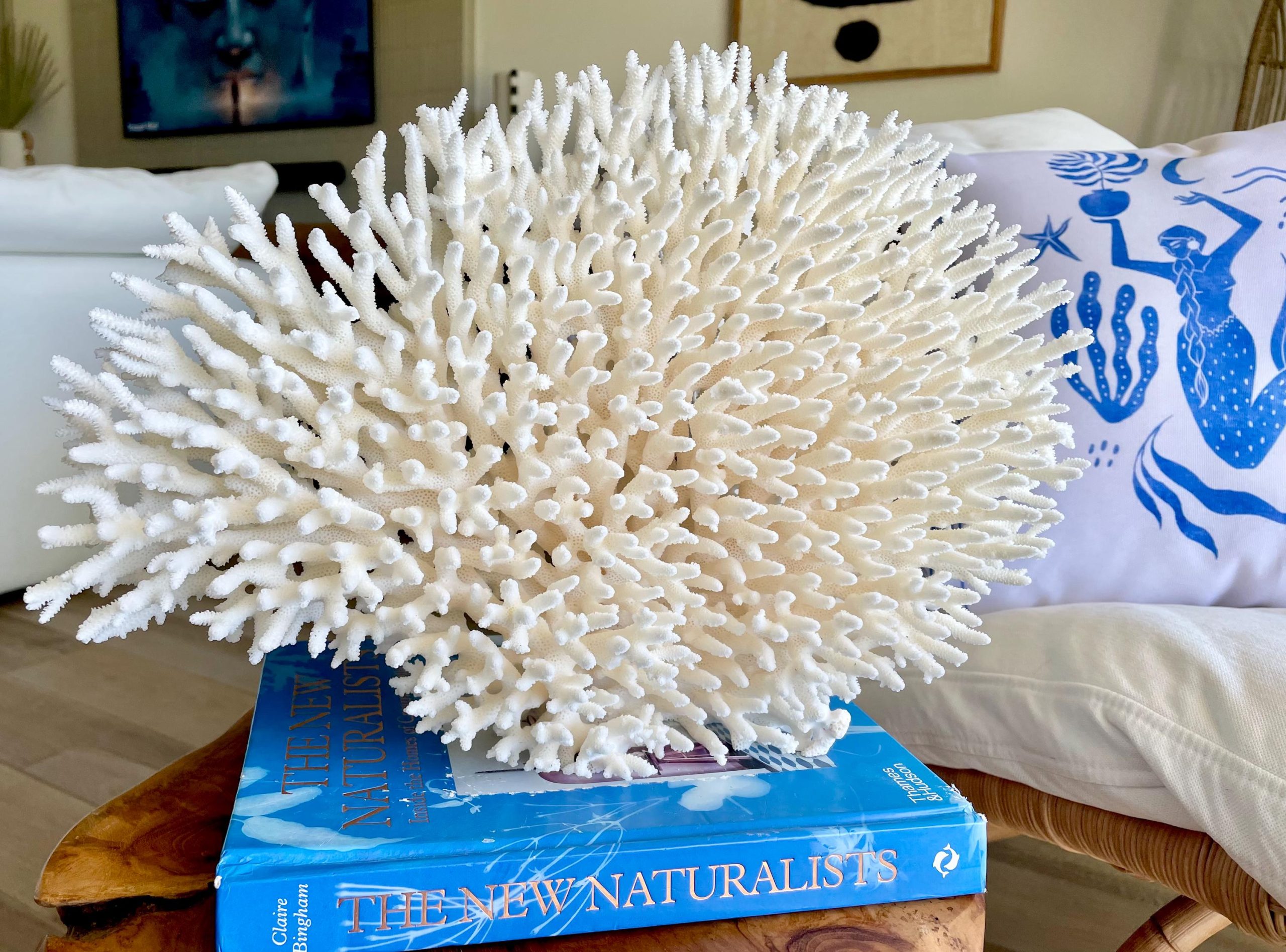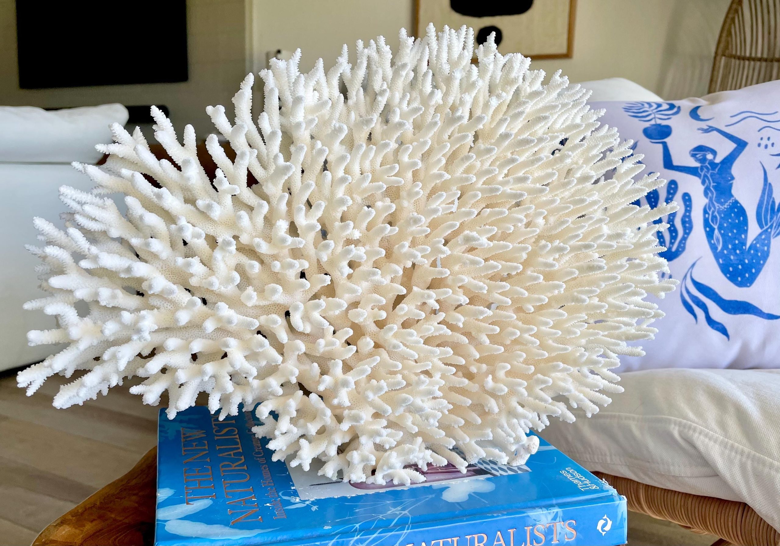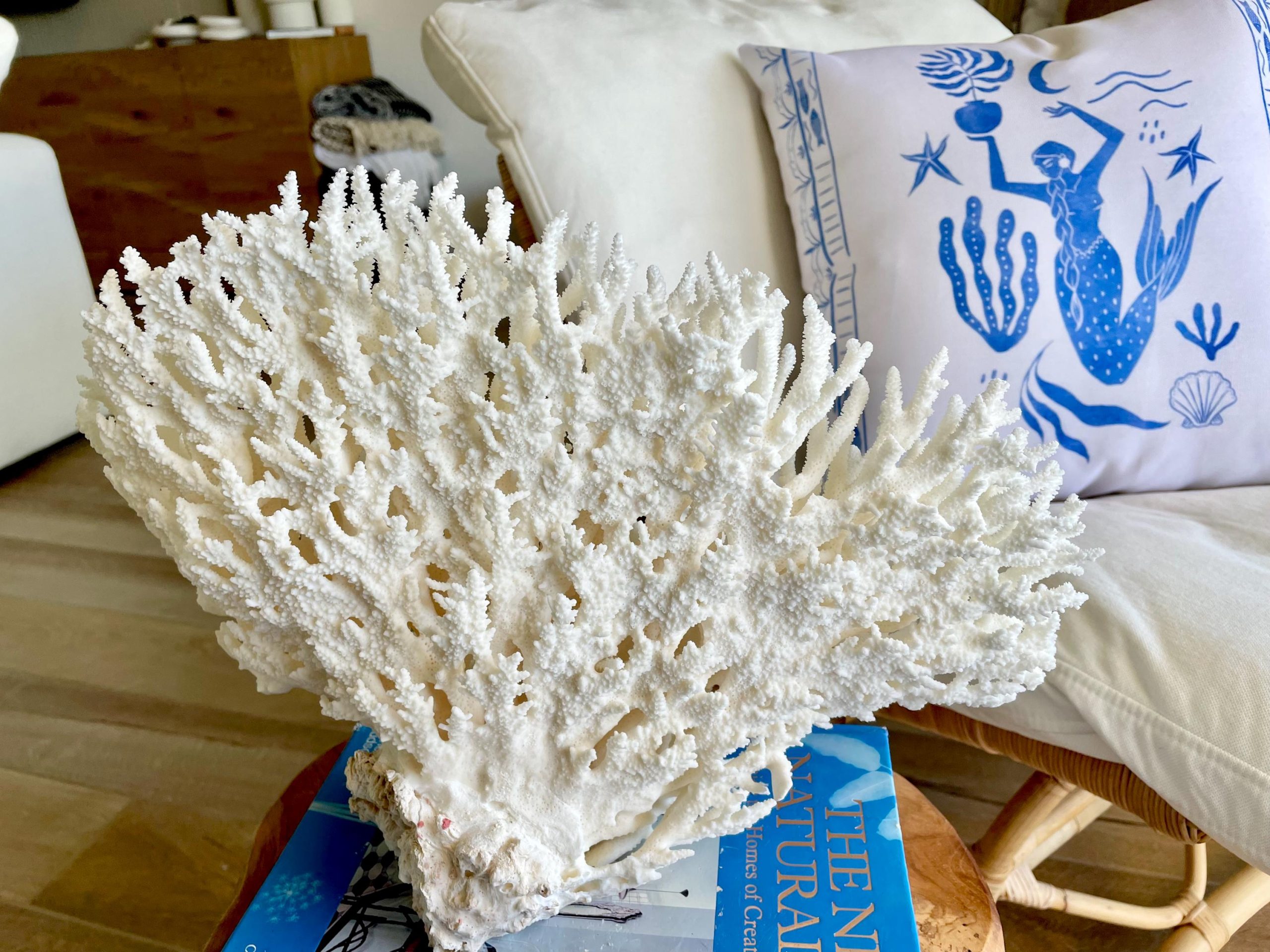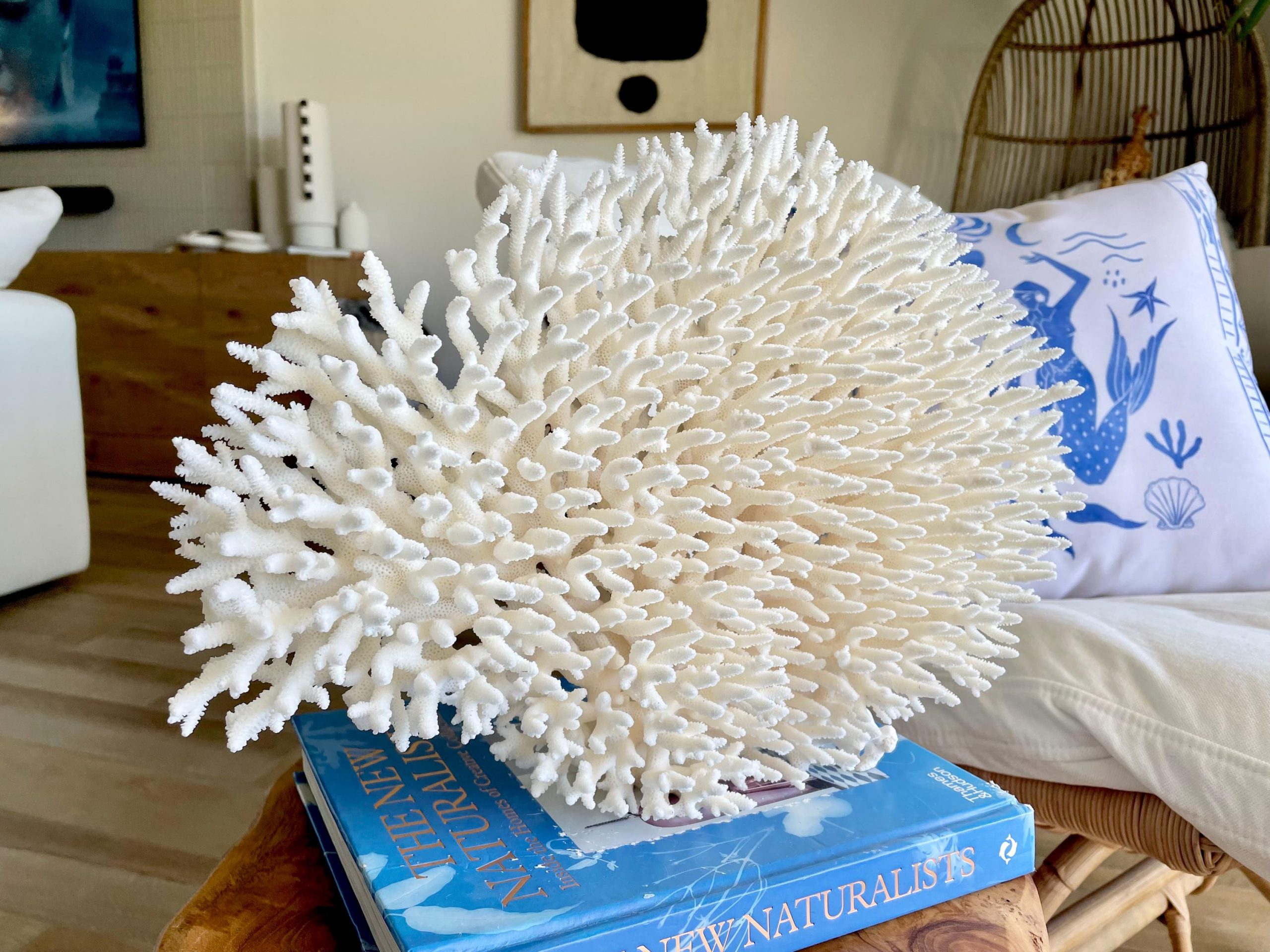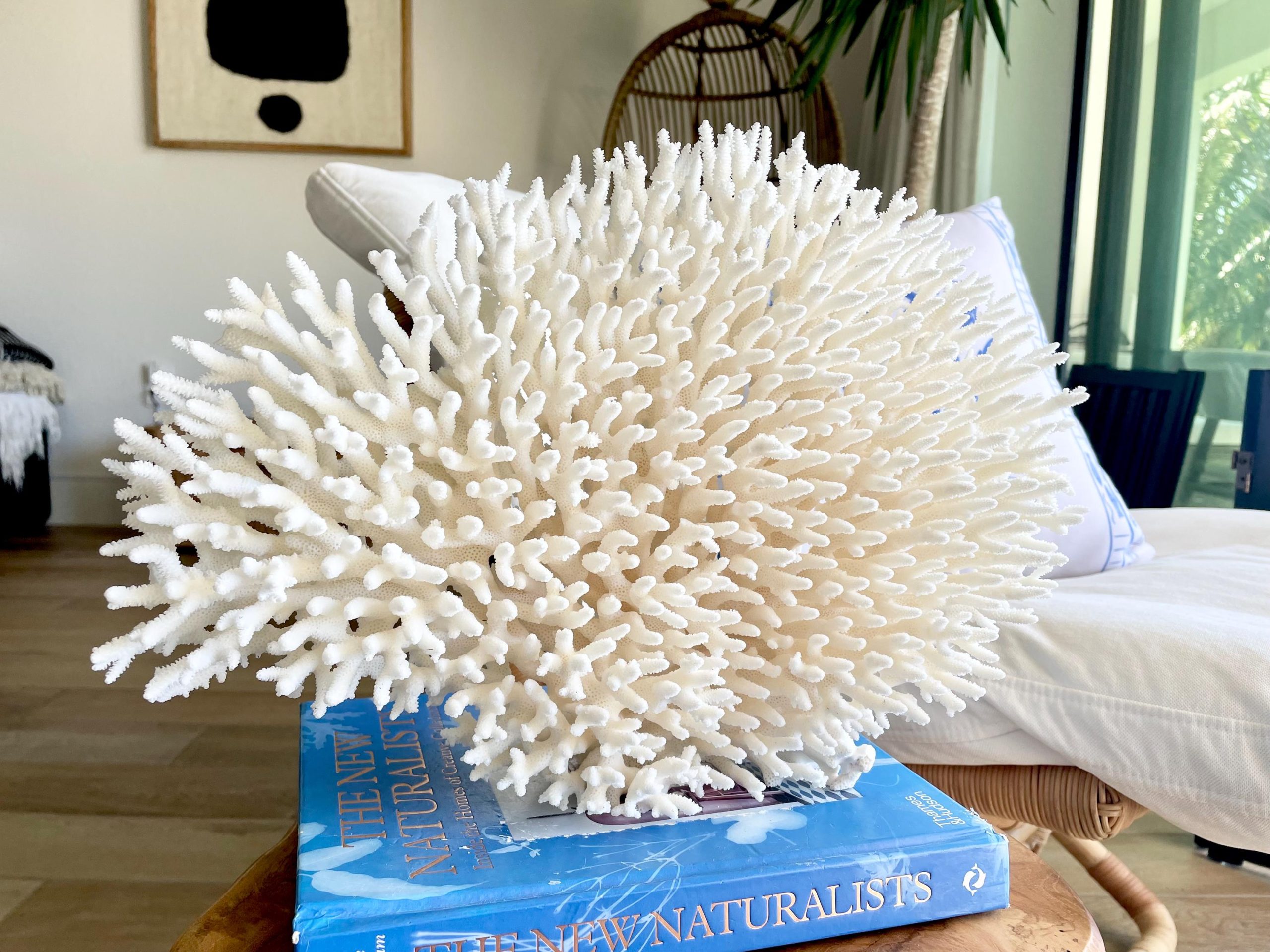 Natural TABLE CORAL 14.5″ x 11″ x 5.5″ White Fossil Specimen Coastal Beach House Décor