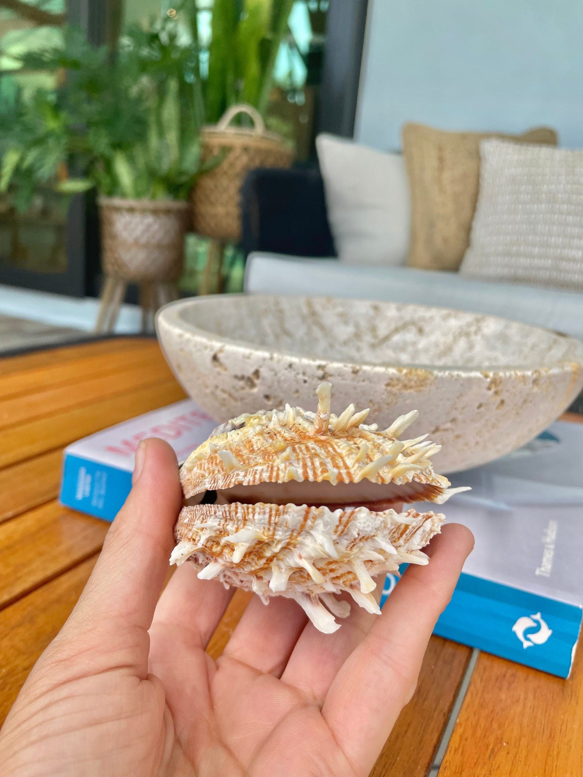 PACIFIC SPINY OYSTER Pairs Shells White/Brown *All Sizes* Paired Clams Seashell Beach Home Décor Spondylus. Each order is for one matching pair( one full shell). Shell is glued shut.