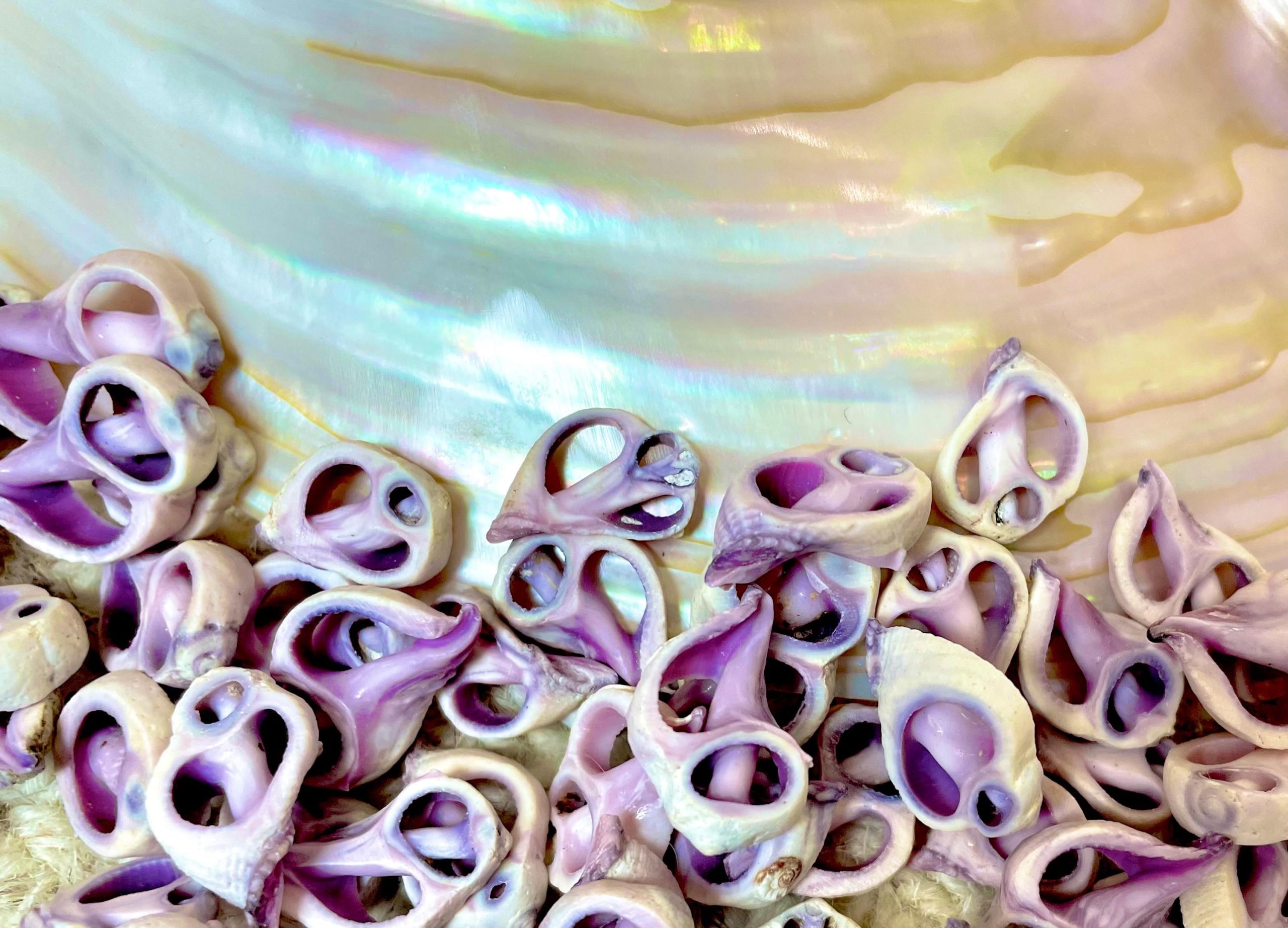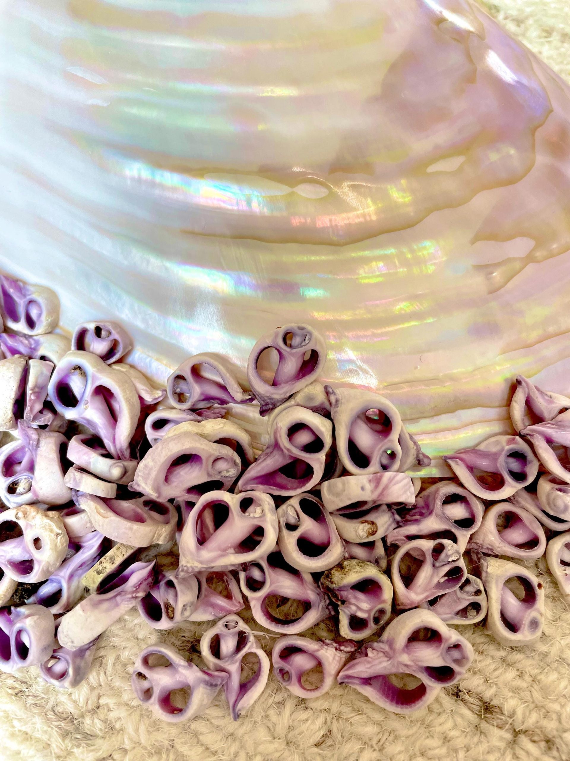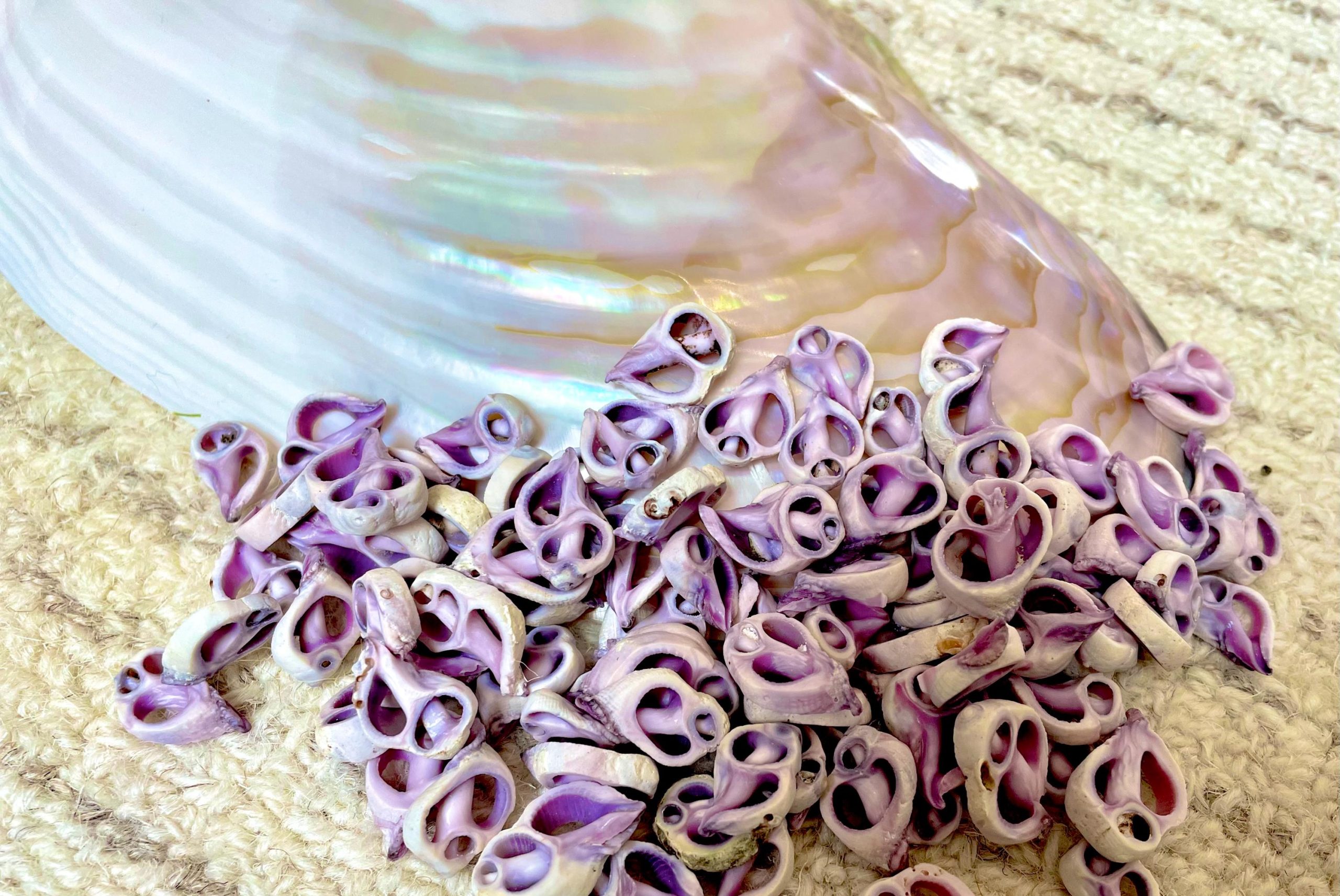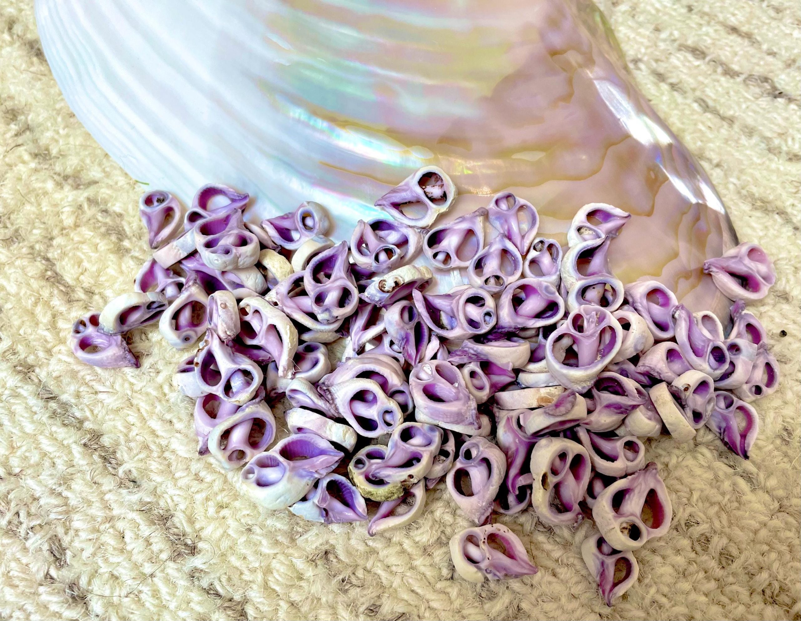 Sliced Cebu shells( center cuts), 100 per pack/order, Slices are up to 3/4″, Purple-Violet Craft Seashells.