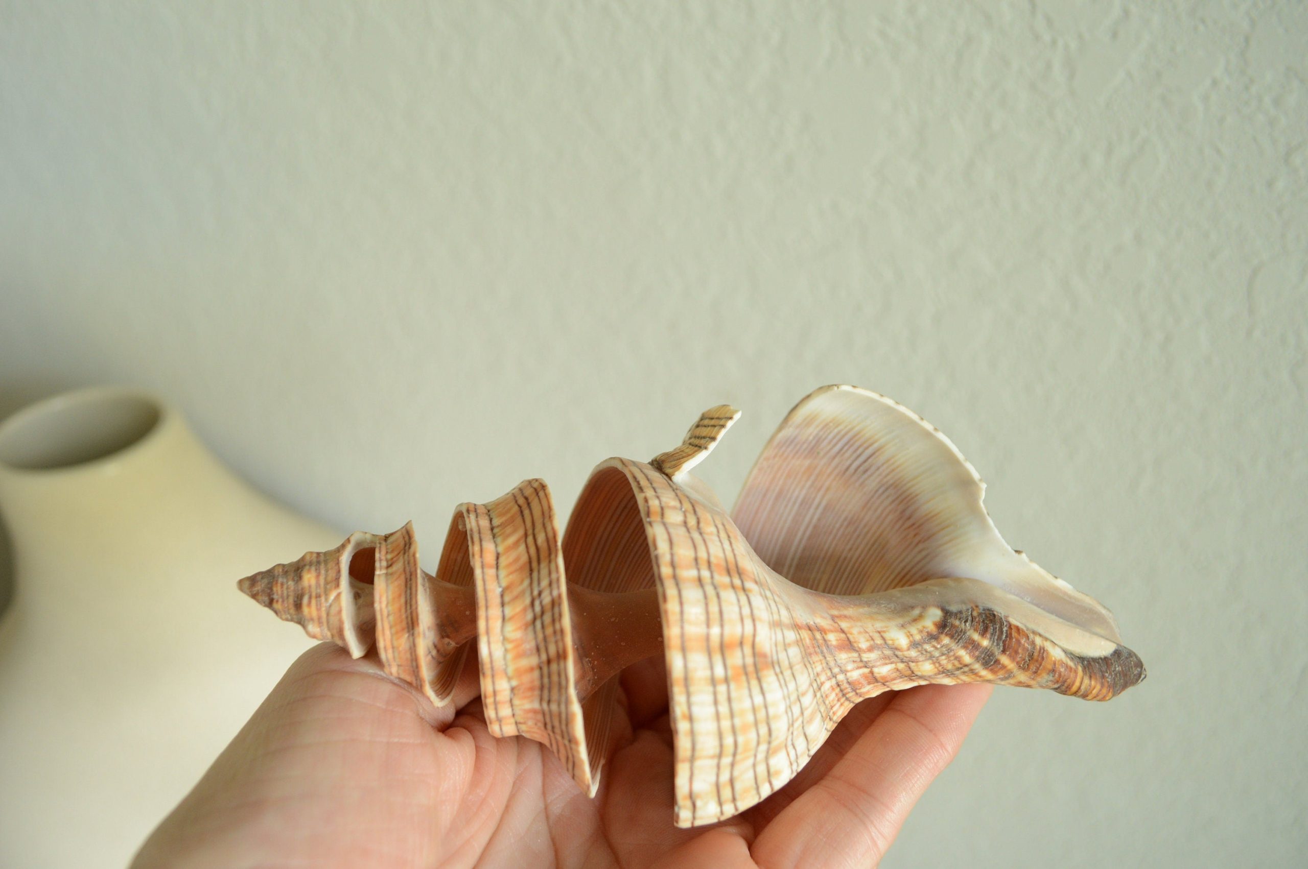 Striped Fox Conch Shell – Up to 8″, Spiral Cut Unique Coastal Décor Seashells