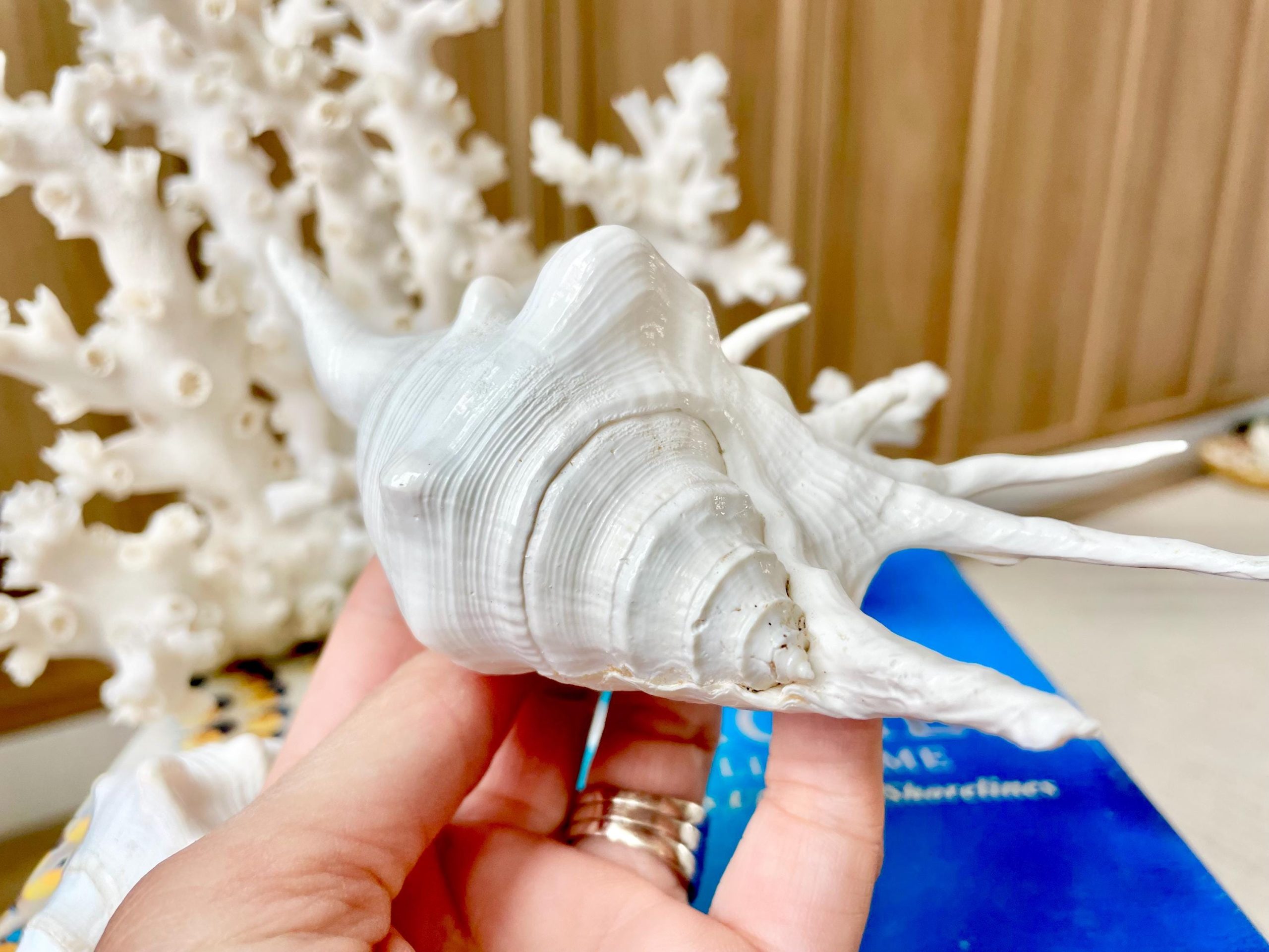 Wow, this shell is bigger than I expected! I chose the large size and it really makes a statement. The spiral pattern is intricate and fascinating to look at. It adds such a nice coastal vibe to my living room. Shipping was fast, and it was wrapped in layers of bubble wrap.